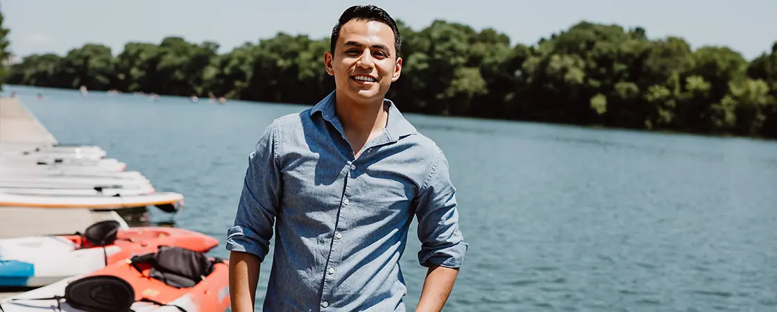 Native Austinite Izzy G can often be spotted at the Texas Rowing Center, kayaking on Lady Bird Lake, or boating on Lake Travis. In addition to natural beauty, Austin also offers plenty of higher education resources. With the help of UFCU, Izzy has taken full advantage of educational opportunities by earning his master’s degree. In turn, he is helping educate others. -